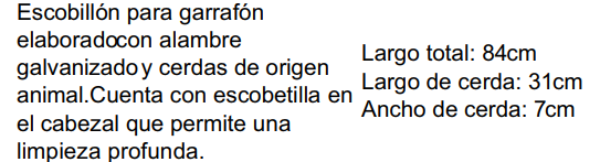 Escobillon para garrafon elaborado con alambre galvanizado y cerdas de origen animal.