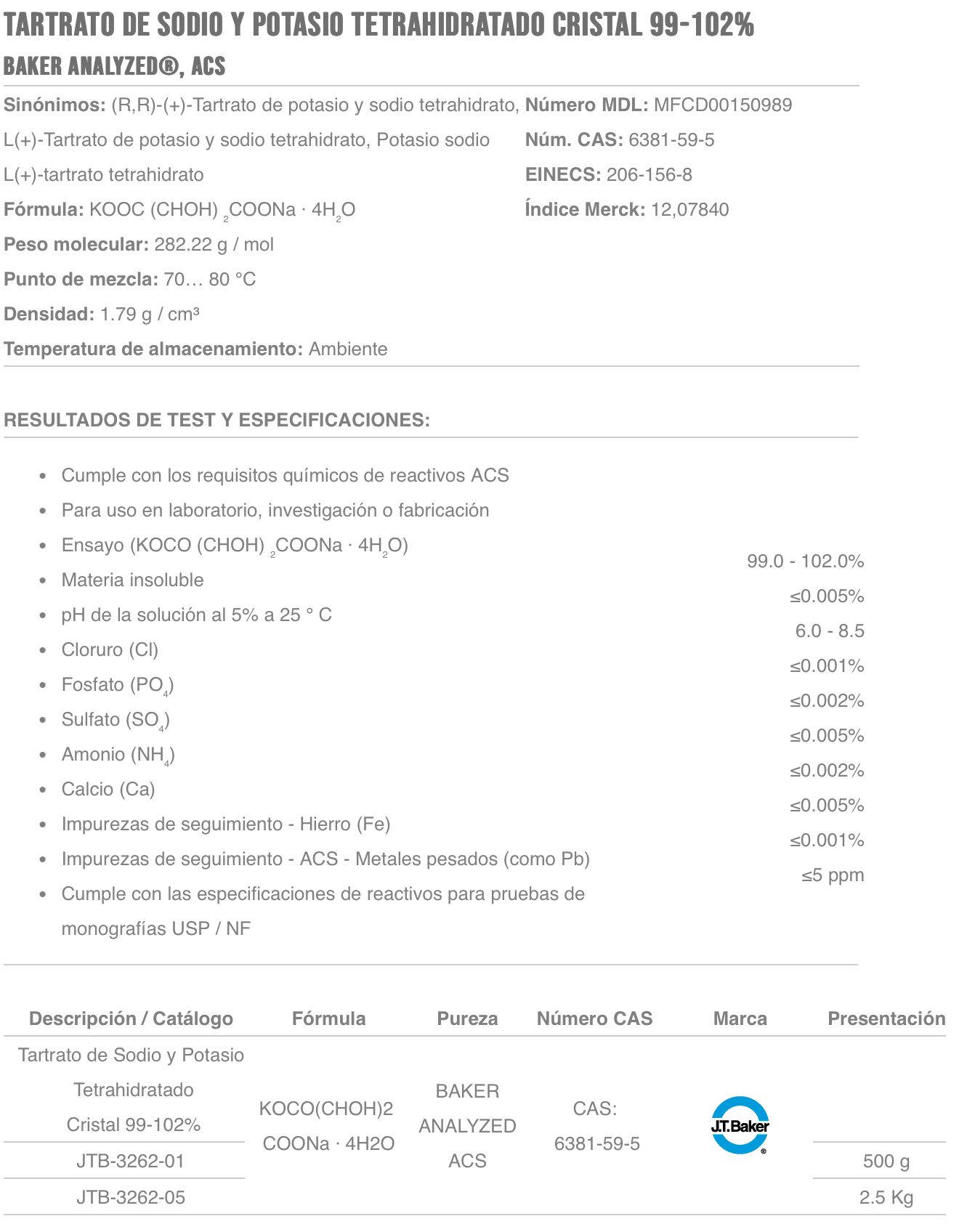 TARTRATO DE SODIO Y POTASIO RA ACS / 500 G