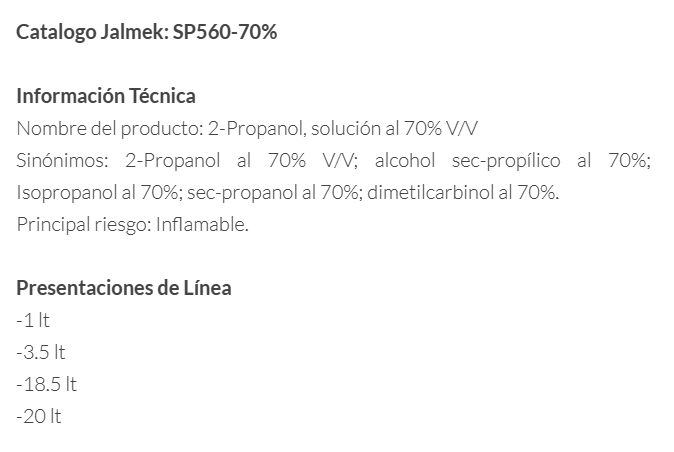 2-PROPANOL, SOLUCIÓN AL 70% V/V