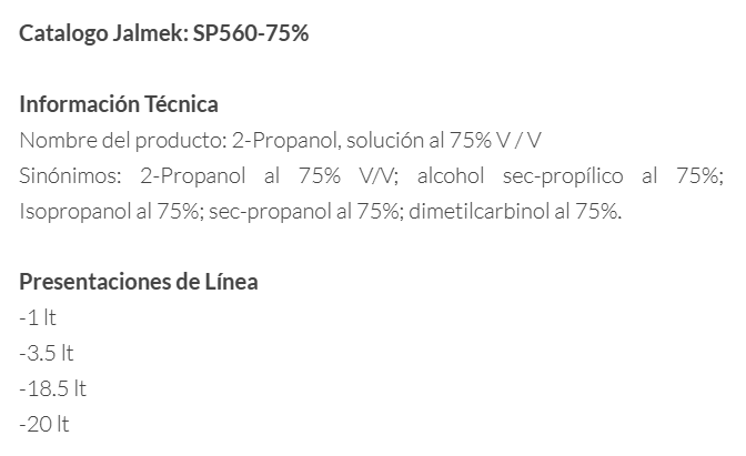 2-PROPANOL, SOLUCIÓN AL 75% V/V