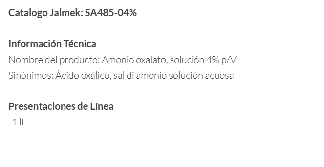 AMONIO OXALATO, SOLUCIÓN 4% P/V