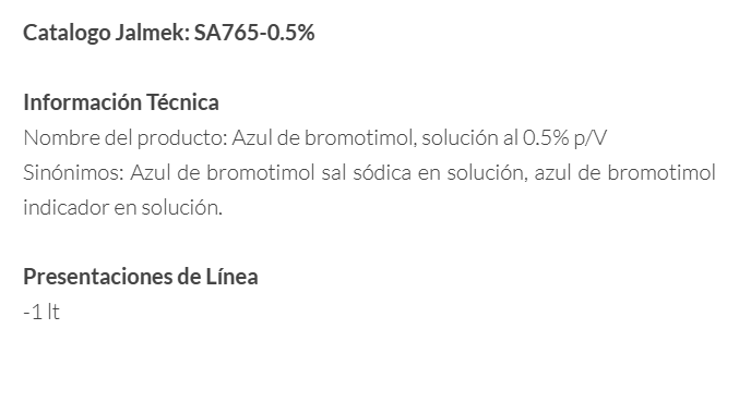 AZUL DE BROMOTIMOL. SOLUCIÓN AL 0.5% P/V