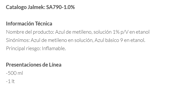 AZUL DE METILENO, SOLUCIÓN 1% P/V EN ETANOL
