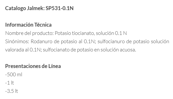 POTASIO TIOCIANATO, SOLUCIÓN 0.1 N