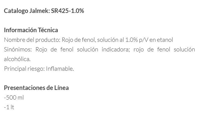 ROJO DE FENOL, SOLUCIÓN AL 1.0% P/V EN ETANOL