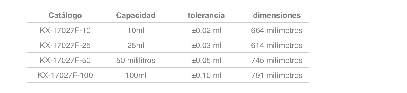 Bureta recta clase A con llave de PTFE, se utiliza para las titulaciones de propósito general y análisis volumétrico donde se requiere una precisión volumétrica trazable a NIST. Viene con número de serie individual y certificado de exactitud de graduación. Fabricada en vidrio de borosilicato, con llave de PTFE (teflón), graduada en esmalte cerámico blanco de fácil lectura, resistente a químicos y es autolubricada. Para llenar con embudo, viene con tapa cubre polvo KIM-KAP. Cumpla los requisitos de la ASTM E287 para clase A.