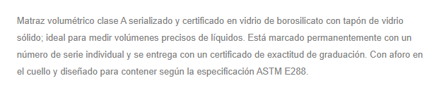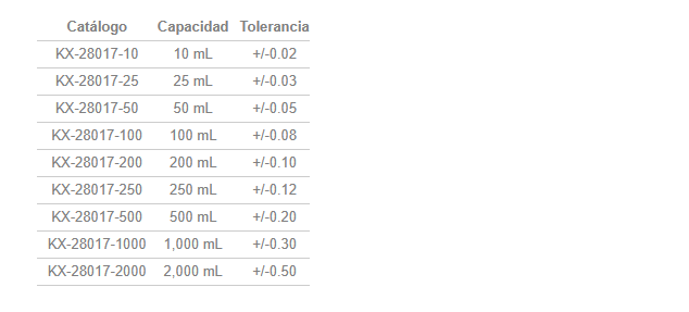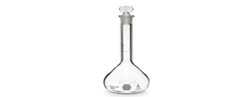 Matraz volumétrico clase A serializado y certificado en vidrio de borosilicato con tapón de vidrio sólido; ideal para medir volúmenes precisos de líquidos. Está marcado permanentemente con un número de serie individual y se entrega con un certificado de exactitud de graduación. Con aforo en el cuello y diseñado para contener según la especificación ASTM E288.