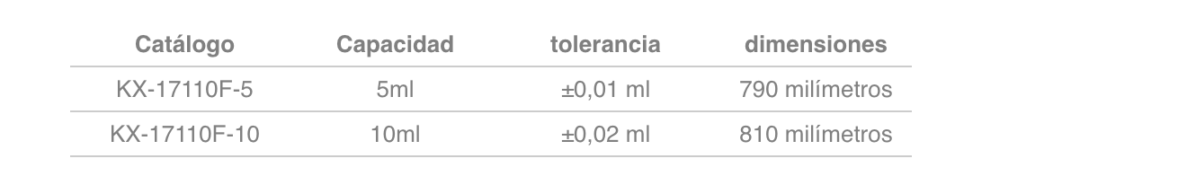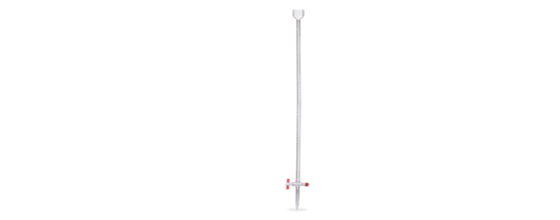 Micro bureta recta clase A con llave de PTFE, se utiliza para valoraciones de pequeños volúmenes que requieren una precisión volumétrica trazable a NIST. Viene con número de serie individual y certificado de exactitud de graduación. Fabricada en vidrio de borosilicato, con llave de PTFE (teflón), graduada en esmalte cerámico blanco de fácil lectura, resistente a químicos y es autolubricada. La parte superior termina en forma de embudo que acepta tapón perforado #3. Cumpla los requisitos de la ASTM E542 para clase A.
