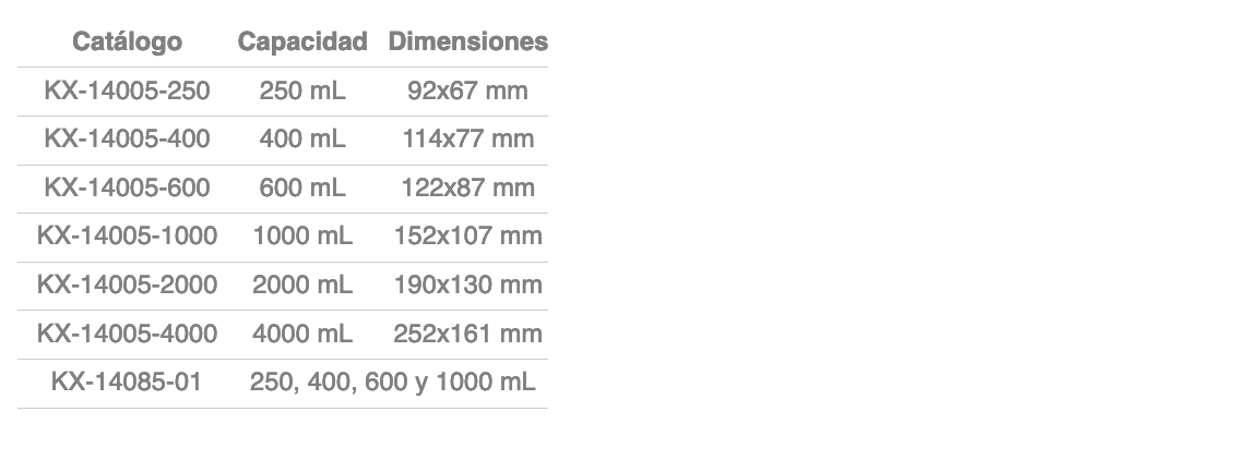 Vaso de precipitado de forma baja en vidrio de borosilicato con pared gruesa reforzada, para ofrecer una durabilidad y resistencia mecánica superior, además de mayor seguridad cuando se usa en condiciones extremas como la manipulación brusca y lavado mecanizado. Paredes gruesas y uniformes en todo el vaso, borde superior reforzado uniformemente mecanizado. Área de marcado y escala de graduación en blanco. Cumple las especificaciones en ASTM,E960 tipo ll.