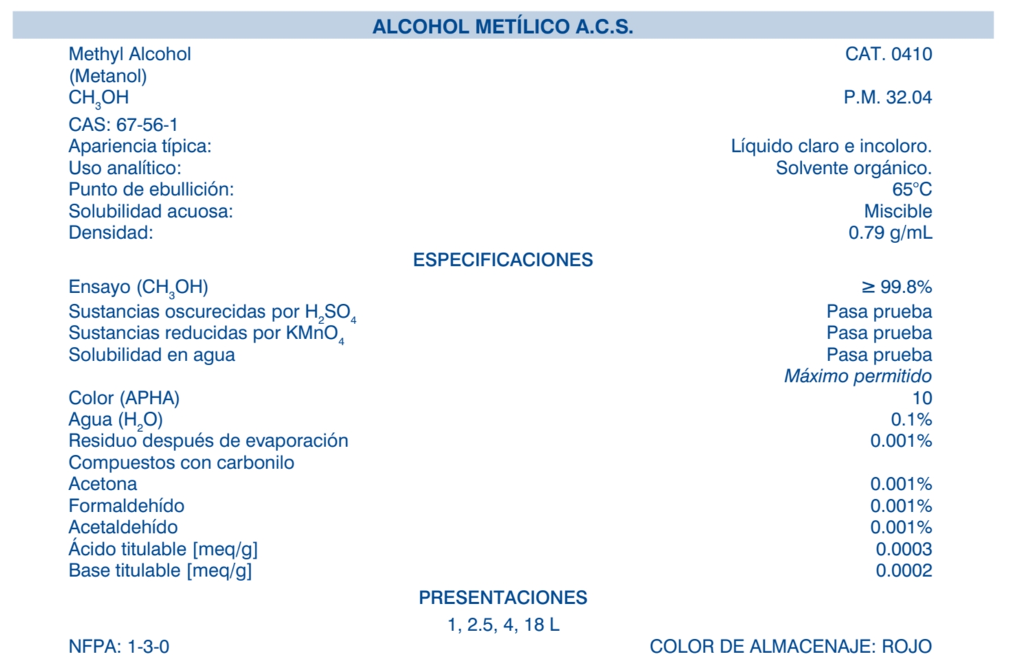 ALCOHOL METILICO (METANOL) A.C.S 4L