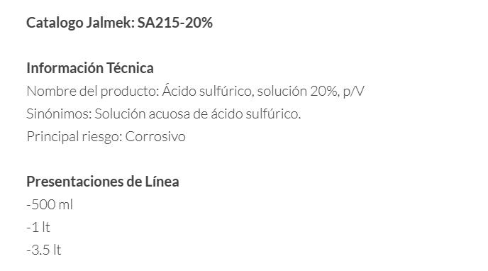 ÁCIDO SULFÚRICO, SOLUCIÓN 20%, P/V
