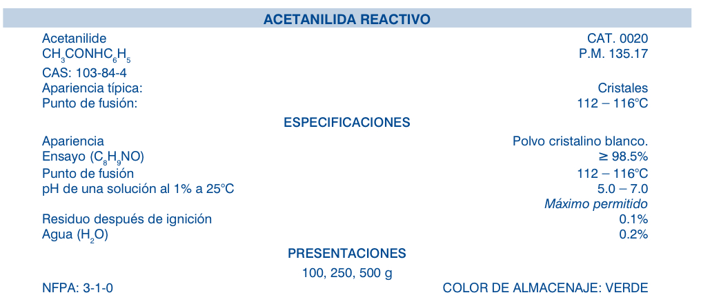 Grado de sustancias químicas de alta calidad para uso industrial y en laboratorios especializados. Todas las etiquetas brindan un análisis de lote que funge como garantía de pureza y consistencia. Los métodos analíticos utilizados para estas determinaciones se basan en procedimientos de prueba estándar descritos en publicaciones técnicas. La calidad de muchos de los reactivos cumple o excede los requisitos establecidos por la American Chemical Society (ACS).
