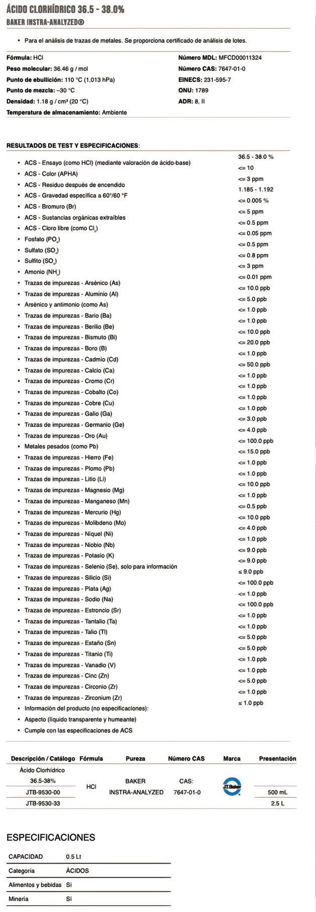 Grado de sustancias químicas de alta calidad para uso industrial y en laboratorios especializados. Todas las etiquetas brindan un análisis de lote que funge como garantía de pureza y consistencia. Los métodos analíticos utilizados para estas determinaciones se basan en procedimientos de prueba estándar descritos en publicaciones técnicas. La calidad de muchos de los reactivos cumple o excede los requisitos establecidos por la American Chemical Society (ACS).