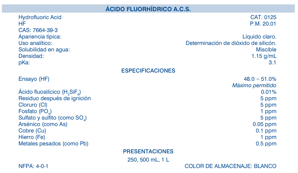 Grado de sustancias químicas de alta calidad para uso industrial y en laboratorios especializados. Todas las etiquetas brindan un análisis de lote que funge como garantía de pureza y consistencia. Los métodos analíticos utilizados para estas determinaciones se basan en procedimientos de prueba estándar descritos en publicaciones técnicas. La calidad de muchos de los reactivos cumple o excede los requisitos establecidos por la American Chemical Society (ACS).
